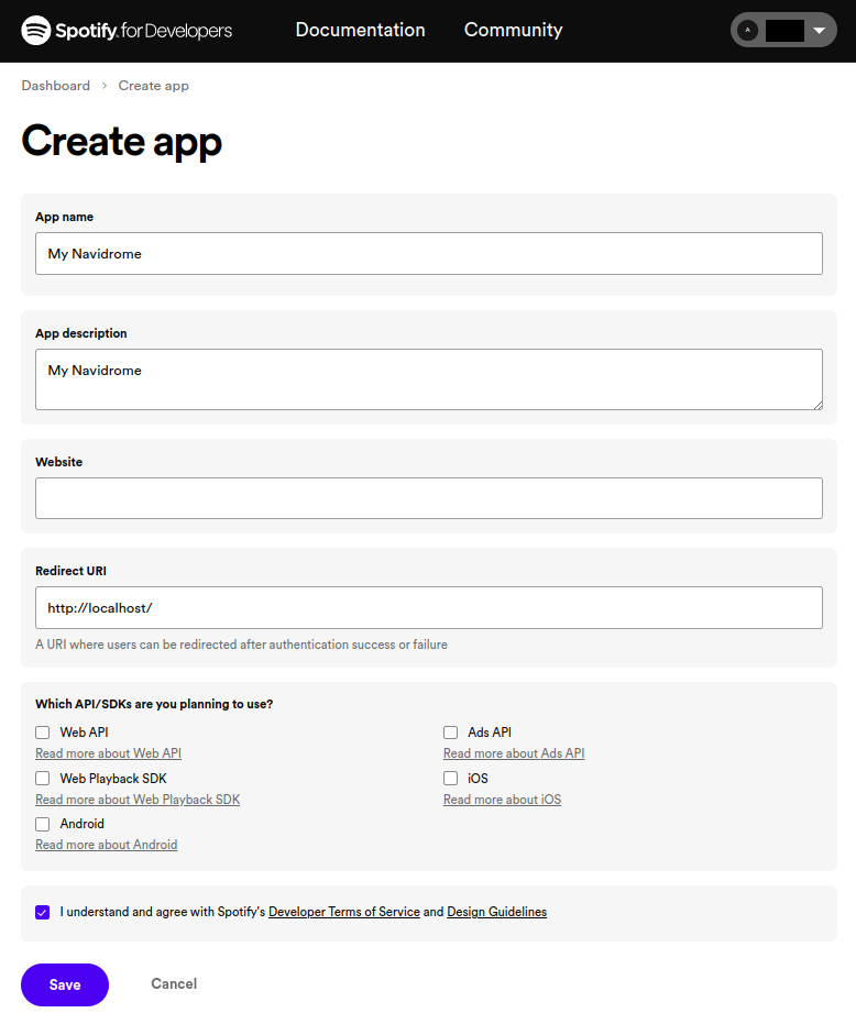 1. Click on the “Create app” button in Spotify’s Developer dashboard: https://developer.spotify.com/dashboard/applications: